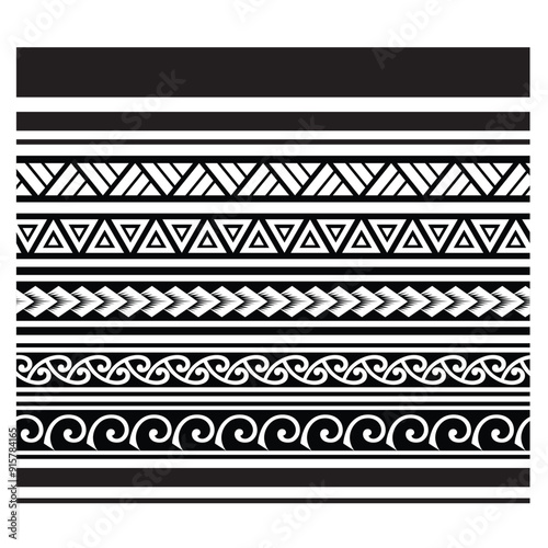 Polynesian tattoo design tribal border. Tribal design ethnic ornament maori band. Samoan Tattoo ribbon sleeve bracelet. Fabric seamless isolated hawaiian armband pattern on white background.