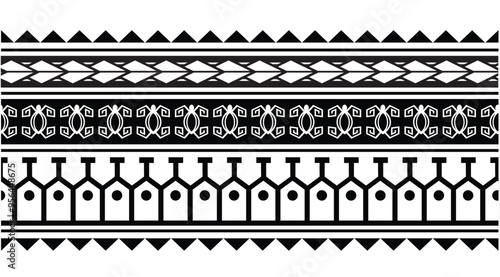 Polynesian tattoo tribal band design. Samoan tattoo tribal ornament border. Decorative seamless pattern.