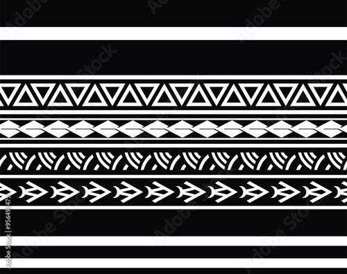 Polynesian tattoo tribal band design. Samoan tattoo tribal ornament border. Decorative seamless pattern.