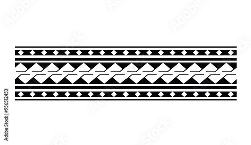 Polynesian tattoo tribal band design. Samoan tattoo tribal ornament border. Decorative seamless pattern.