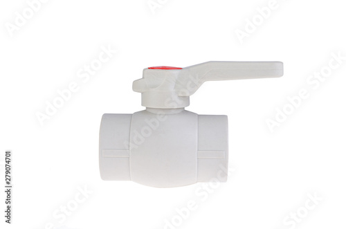 Polypropylene tap for water supply. High temperature soldering. Plumbing work. White or isolated background