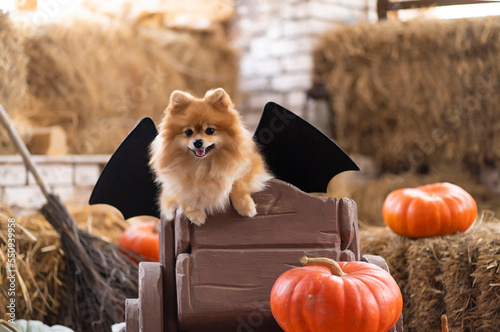 adorable, animal, astrology, background, barn, brown, canino, closeup, cute, dog, doggy, domestic, dragon, dried flowers, fly, halloween, hay, holiday, horoscope, little, looking, mammal, pet, pomeranian, portrait, pumpkin, puppy, purebred, selective focus, white, wing, year, young