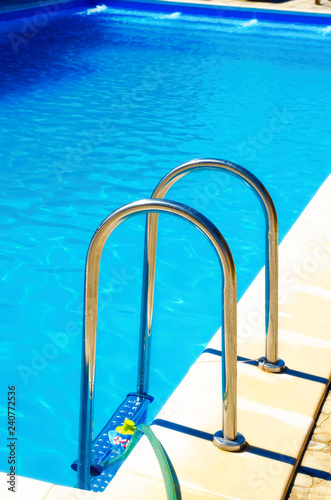 pool, swimming, stair, stair, water, hotel, blue, summer, resort, leisure, relaxation, luxury, poolside, vacation, spa, travel, nobody, clean, swim, ladder, sunlight, turquoise, beautiful, nature, bright, outdoors, clear, staircase, wet, tropical, background, edge, holiday, bathe, water, healthy, sea, steel, surface