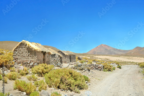 bolivia, village, view, landscape, agricultural, bungalow, house, traditional, peasant, poor, stone, architecture, thatch, south america, developing, desert, dry, waterless, steppe, grass, barren, mountain