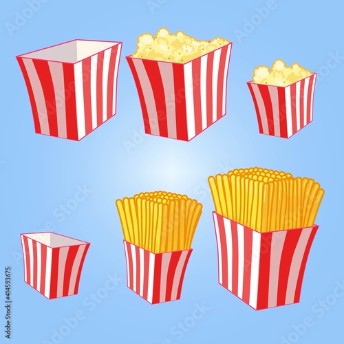 Popcorn and Pop Potatos With Paper Cup icon, object, and beground template