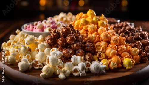 popcorn varieties include classic salt cheese chocolate caramel sweet multi color and selective focus