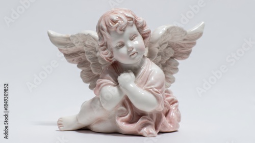 cherub, white background, peaceful, thoughtful, ceramic, decoration, angelic, religious, spiritual, ornament