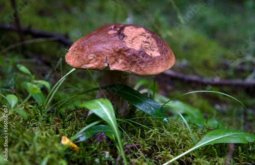Porcini Fungi grows among mosses and grass .