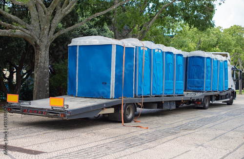 Portable bio-toilets on the truck. Preparing for the event.