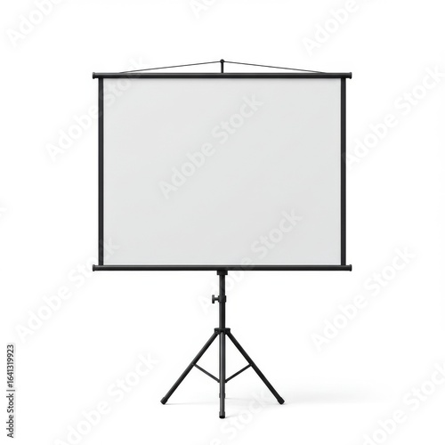 projection, screen, tripod, portable, projector, presentation, display, white, black, blank, empty, racked, equipment, office, conference, meeting, seminar, classroom, home, theatre, video, motion picture, image, visual, media, technology, tool, device, contraption, hardware, metal, fabric, simple, minimal, clean, modern, studio, shot, isolated, background, front, view, full
