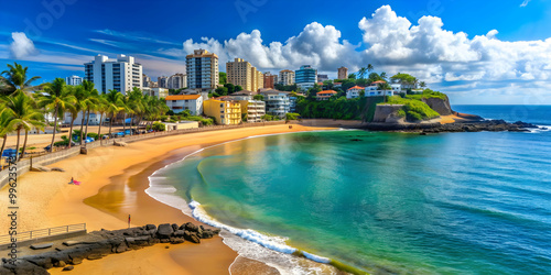 Porto da Barra beach in Salvador Bahia Brazil with vibrant blue waters and golden sands, Porto da Barra, beach, Salvador