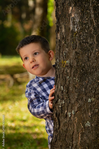 children, children, boy, young, vertical, portrait, autumn, background, nature, one person, beautiful, pose, happy, cute, face, smile, look, eye, hair, teeth, shirt, photo, colourful, detail, yellow, green, red, blue, tree, forest, outdoors, outside, sunny, day