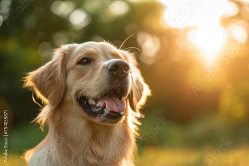 Portrait of a golden retriever on nature background