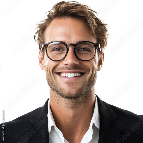 man, businessman, smiling, smile, goggles, shirt, business, male, photogenic, isolated, transparent, portrait, white, model, confident, cut-out, looking, guy, face, fashion, studio, people, person, expression, hair, casual attire, standing, businesswoman, professional, executive