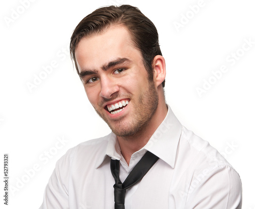 Portrait of a handsome young man smiling with necktie