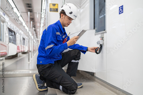 engineer, railway, technology, transportation, industrial, electrical, transport, train, inspector, control, station, track, network, communication, checking, security, rail, management, subway, underground, system, test, business, railroad, machine, safety, service, technician, maintenance, logistic, power, work, locomotive, development, repair, operator, professional, workshop, contractor, employee, helmet, installation, manufacturing, success, depot, factory, occupation, smiling, steel