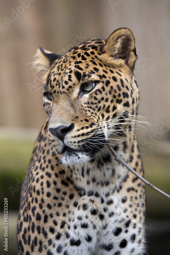 portrait of a male Sri Lanka Leopard, Panthera pardus kotiya