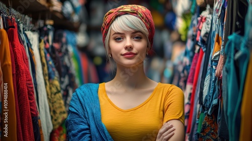 Portrait of a smiling happy friendly store employee in holiday shopping season