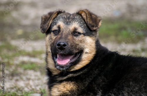 Portrait of a tramp dog. A beautiful abandoned puppy