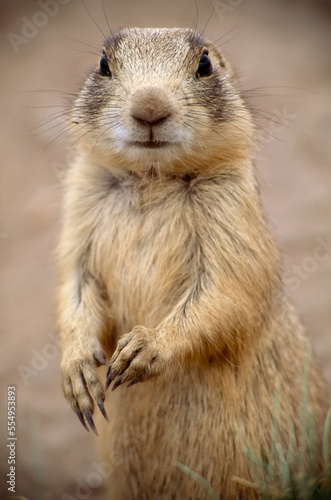 outdoors, day, closeup, detail, portrait, standing, critter, us, wyoming, whisker, paw, eye contact, mammal, rodent, animal, wildlife, cute, vertical, one animal, color image, prairie dog, blurred background, animal portrait, no people, front view, half-length