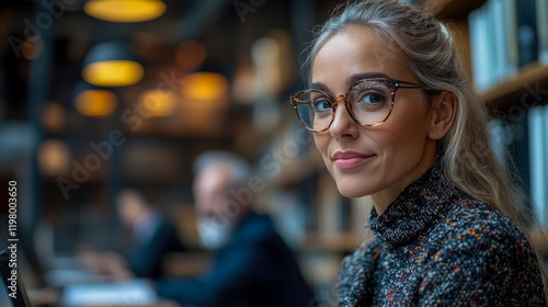 smile, closeup, artistic, blur, goggles, sharpened, character, office, human, bokeh, calm, eye, chic, background, serene, woman, look, model, beautiful, hair, library, gentle, attractive, pretty, clothing, style, fashion, workspace, setting, scene, blond, lighting, ambience, unique, portrait, compelling, female, captivating, field, face, gaze, sweater, texture, professional, intimate, intelligent, depth, elegant, indoor