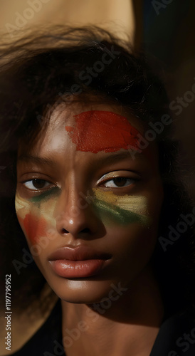 portrait, woman, face, make-up, eye, skin, hair, colours, fashion, beauty, model, artistic, creative, art, expression, pose, style, look, photo, studio, lighting, shadow, background, photo, artist, shot, coloured, colours