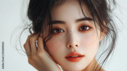 portrait, korean, woman, beauty, serene, feature, soft light, minimalist, elegant, expression, model, captivating, graceful, calmness, aesthetic, make-up, hair, youthful, closeup, natural light, charme, warmth, personal, emotion, identity, womanly, style, fashion, health, simplicity, delicate, contemporary, skincare, facial expression