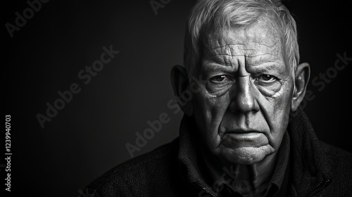 elderly, man, portrait, monochrome, face, serious, expression, wrinkle, age, character, deep, feature, sombre, black, white, lighting, texture, intensity, gaze, personality, emotion, wisdom, solitude, contemplation, dignity, candid, natural, visual, art, photo, studio, classic, senior, mature, human, dramatic, closeup, identity, timeless, narrative, detail, realism, monochromatic, tone, contrast, simplicity, aesthetic, style, photograph