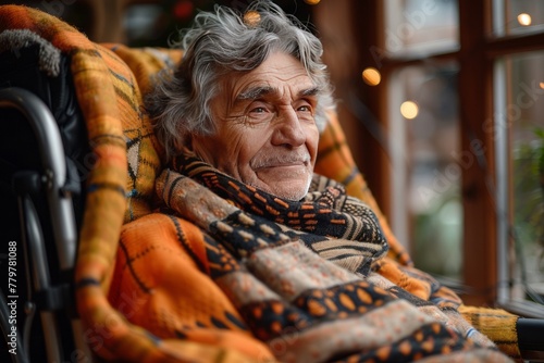 portrait, happy, old man, sitting, chair, warm clothes, elderly, senior citizen, smiling, content, relaxed, comfortable, cosy, leisure, retirement, happiness, joy, serenity, peaceful, satisfaction, contentment, relaxation, senior, old, person, face, people, mature, age, 1, wrinkle, smile, elder, aged, beard, retired, pensioner, ageing, grandfather