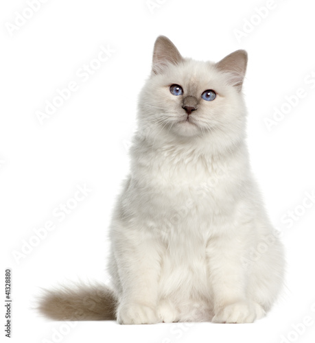 cat, felino, white background, kitten, portrait, pet, white, sitting, isolated on white, cut-out, studio shot, isolated, young, alone, front view, full-length, animal, one animal, animal themes, vertebrate, blue eye, vertical, nobody, no people, purebred