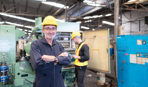 Portrait of engineers and technicians Check the electrical system and repair the mechanical system in the control cabinet of the machine. in order for the machine to return to normal operation