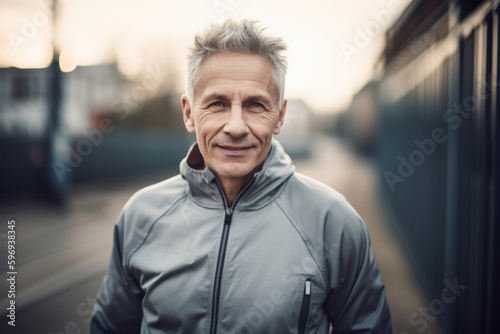 Portrait of handsome senior man in sportswear looking at camera