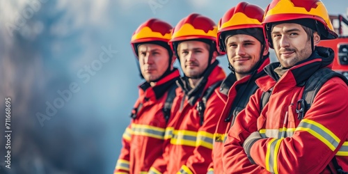 Portrait of happy fireman team standing and look camera
