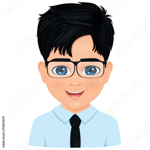 Portrait of little male student with glasses smiling