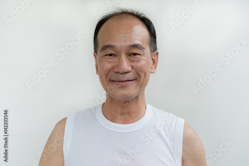 portrait of old man asia wear white shirt on white background