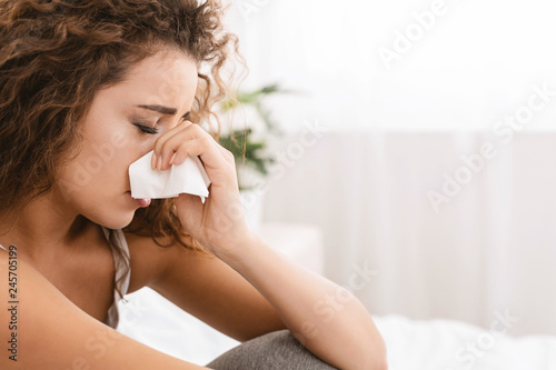 girl, sad, bed, crying, bad, depression, home, napkin, young, beautiful, cry, female, pain, people, stress, white, sick, cold, expression, fatigue, lady, melancholy, patient, problem, painfully, sleepy, woman, adult, emotional, feeling, loneliness, sorrowful, break, difficulty, disappointment, handkerchief, hopelessness, negativity, 1, only, tear, copy space, caucasian, portrait, femininity, feminine, closeup, hormone