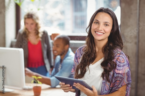 Portrait of smiling businesswoman holding digital tablet