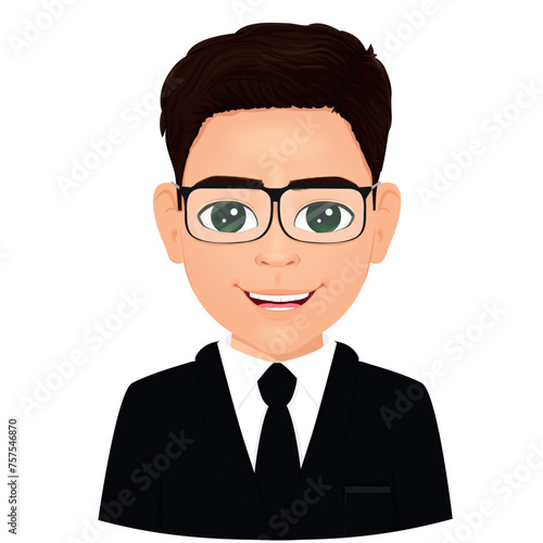 teenage, attractive, avatar, business, businessman, cartoon, casual attire, character, cute, face, fashion, flat, goggles, guy, hair, photogenic, happy, head, high school, human, illustration, isolated, laughter, male, smart, smile, student, success, teacher, university, young