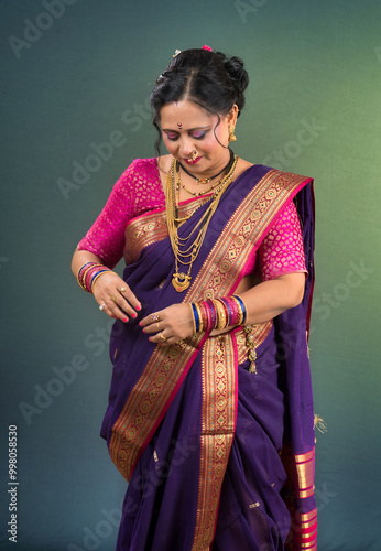 Portrait of traditional Indian woman wearing saree