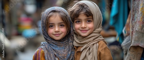children, children, girl, boy, portrait, young, smiling, happy, innocent, adorable, sweet, cute, beautiful, foulard, headscarf, traditional, culture, religious, faith, belief, family, friends, playful, hope, joy, humanity, love, innocence, optimism, diversity, ethnic, tradition, lifestyle, street, urban, city, closeup, look, expression, emotion, candid, natural, real, authentic, life
