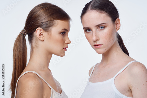 2, beauty, beautiful, woman, woman, skin, young, hair, face, portrait, white, girl, female, isolated, model, attractive, caucasian, healthy, care, sexy, skincare, happy, fashion, pretty, people, 2, sensual, make-up, sensuality, 20s, brunette, looking, glamour, together, girl, treatment, different, closeup, adult, background, body, smile, clean, fresh, model, friends, cute, studio, health, natural