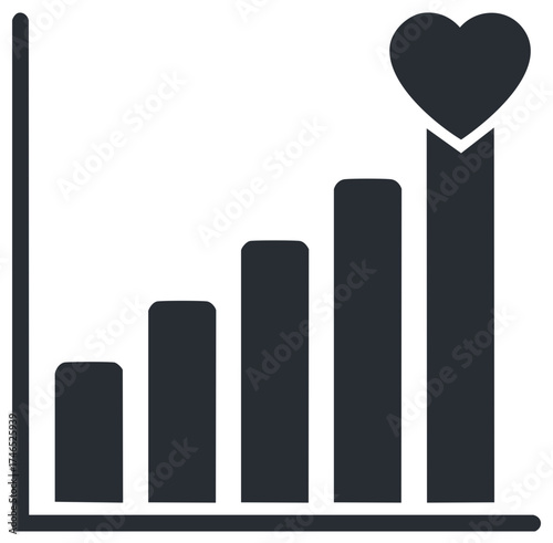 Positive Growth Chart Icon with a Heart Symbol Representing Success and Popularity