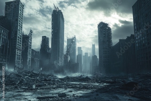 ruin, city, empty, destroyed, building, sky, cloudy, grey, dark, desolation, dust, debris, grim, ruined, abandoned, future, apocalyptic, urban, concrete, architecture, metal, damaged, fractured, broken, aftermath, stormy, disaster, huge, wreckage, shadow, grey, storm, cloud, immensity, decaying, desolate, horizon, industrial, modern, deserted, crumbling, city landscape