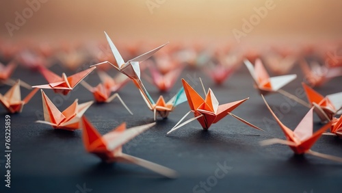 Postcard for World Origami Day, November 11. Concept "The Magic World of Origami". Whether it is an animal figurine or a portrait of a person, there is an origami element here.
