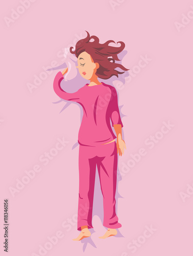 poster with sleeping brunette girl on pink pyjamas