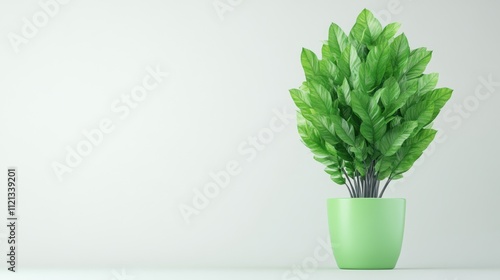 Potted Green Plant with Lush Foliage on a Minimalistic Background for Modern Interior Decor