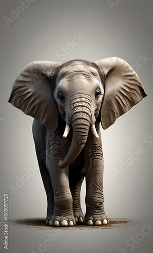 Pouting Baby Elephant with Droopy Ears and Sad Eyes, Isolated on Plain Background for Adorable Appeal
