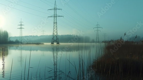 sky, electricity, cable, energy, powerful, voltage, industrial, wire, landscape, technology, line, metal, tower, supply, steel, blue, structure, transmission, high, environment, lake, nature, water, pylon, autumn, plant, tree, silhouette, engineering, distribution, river, sunset, pole, beautiful, grass, infrastructure, dusk, yellow, horizon, cloud, outdoors, view, pollution, equipment, skyline, forest, energetic, scenery