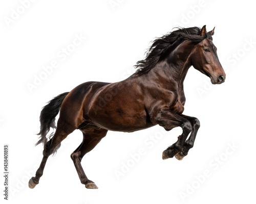 Powerful black horse leaping in the air during exercise session on a transparent background, cut out