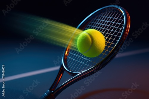 tennis, ball, racket, serve, power, glowing, motion, energy, sport, competition, athlete, action, speed, impact, dynamic, smash, professional, training, match, fitness, tournament, strength, coaching, victory, recreation, equipment, performance, sharpened, exercise, game